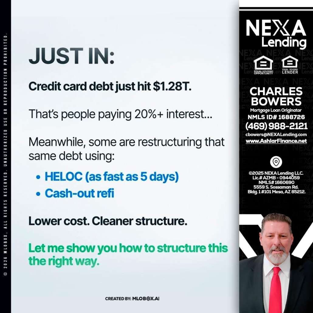 Hi, my name is Charles Bowers. I’m a Loan Officer with NEXA Lending LLC., offering personalized mortgage solutions, fast customized quotes, great rates and service with integrity.